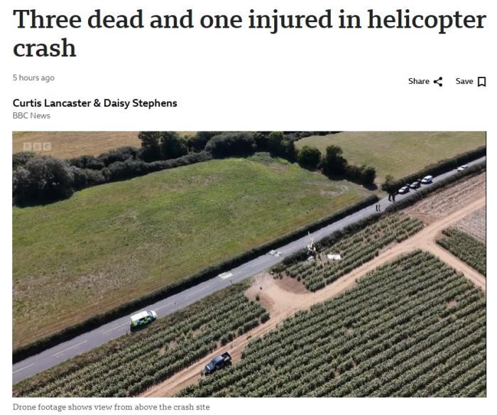 中新網(wǎng)8月26日電 據(jù)英國廣播公司(BBC)報道,當?shù)貢r間25日,一架直升機在英國懷特島墜毀,導致3人死亡,1人重傷。