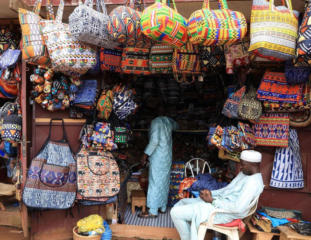 這是2023年9月16日拍攝的喀麥隆雅溫得手工藝品市場一家店鋪。新華社記者董江輝攝