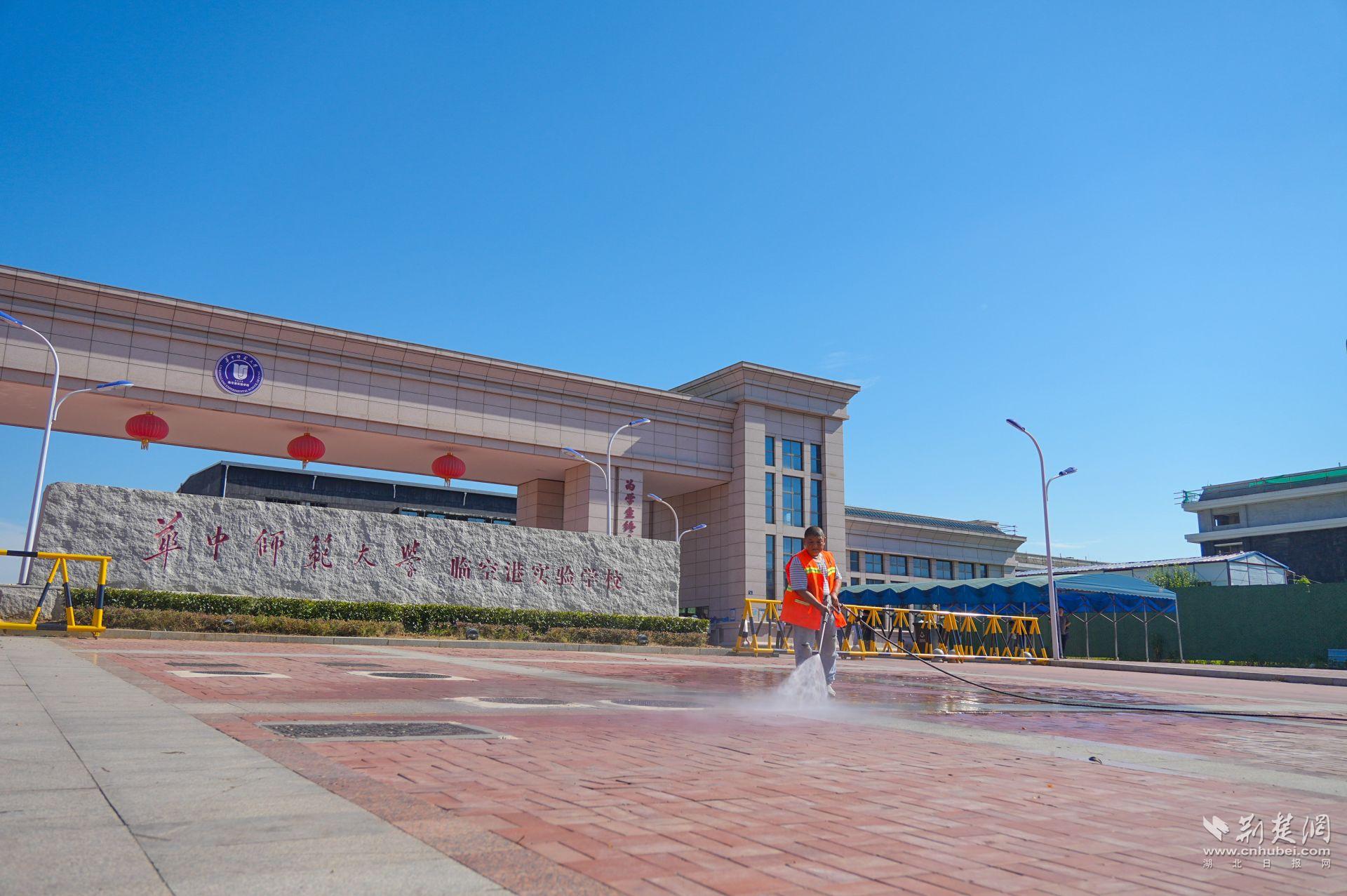 校園周邊環(huán)境的整潔同樣關(guān)系到孩子們的安全與健康。8月29日清晨,在華中師范大學(xué)臨空港實(shí)驗(yàn)學(xué)校門口,7名環(huán)衛(wèi)工人配合一輛高壓沖洗車,正對人行道、護(hù)欄、公交站臺進(jìn)行細(xì)致清潔,地磚縫隙間的落葉、油漬也不放過。
