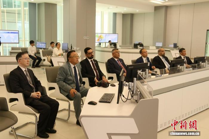 8月31日,阿卜杜拉·阿爾·曼杜斯一行在世界氣象中心(北京)粵港澳大灣區(qū)分中心參觀交流。曾凡敏 攝