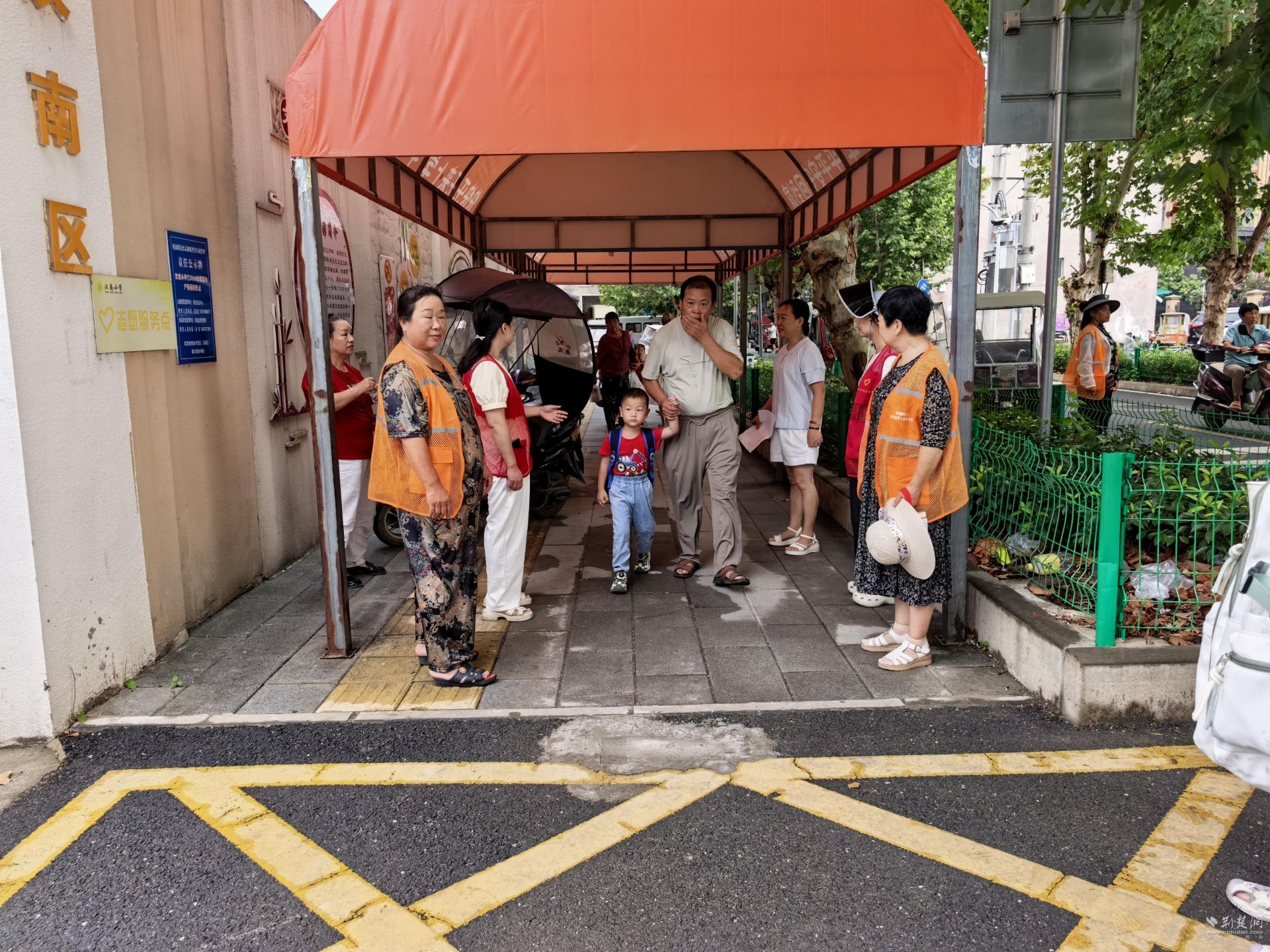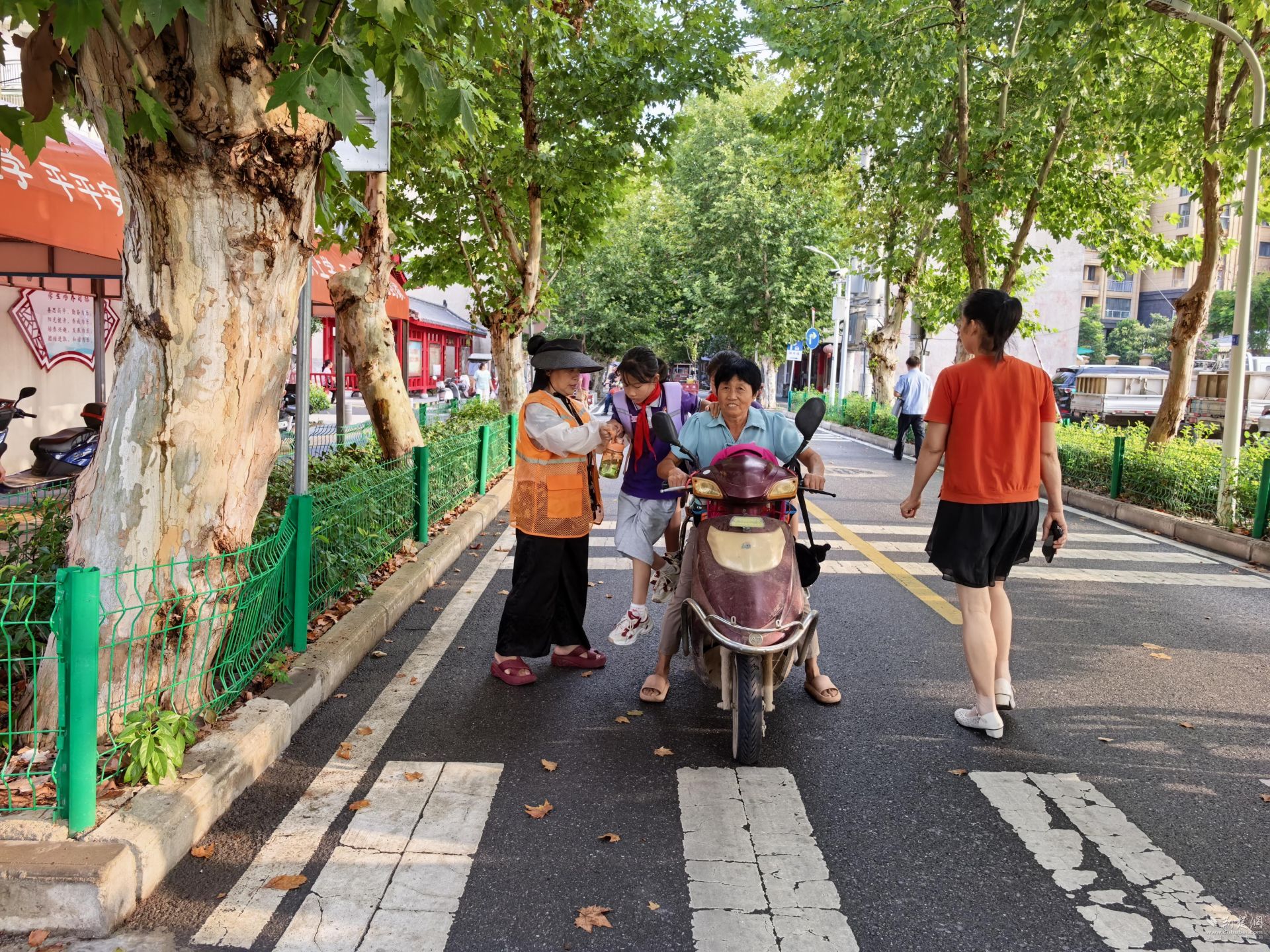 “寶貝別緊張,阿姨送你到教室門口?!?社區(qū)工作人員牽著一名背著卡通書包的一年級新生,耐心安撫著哭鬧的孩子,微笑著向焦慮的家長點頭示意。針對初次入學(xué)的低年級學(xué)生,社區(qū)特別設(shè)立 “愛心護送崗”,由專人一對一陪護穿過人行道,這些細致舉動讓校門口不時響起家長們的道謝聲。