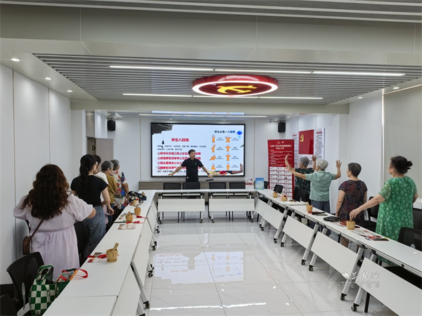 隨后,醫(yī)師帶領(lǐng)居民們學(xué)習(xí)傳統(tǒng)養(yǎng)生功法“八段錦”。伴隨著舒緩的口令,大家認(rèn)真練習(xí)“雙手托天理三焦”“左右開(kāi)弓似射雕”等動(dòng)作,體驗(yàn)中國(guó)傳統(tǒng)運(yùn)動(dòng)在調(diào)理氣血、舒緩壓力方面的功效。