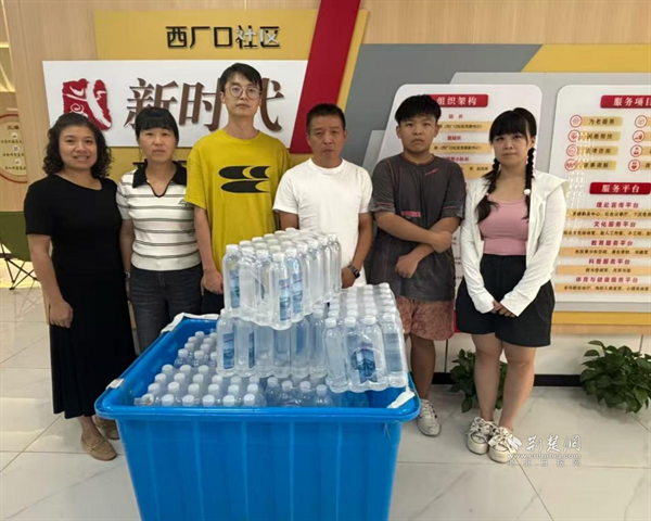 西廠口社區(qū)愛(ài)心企業(yè)漫庭酒店為一線工作人員送去礦泉水。 通訊員供圖