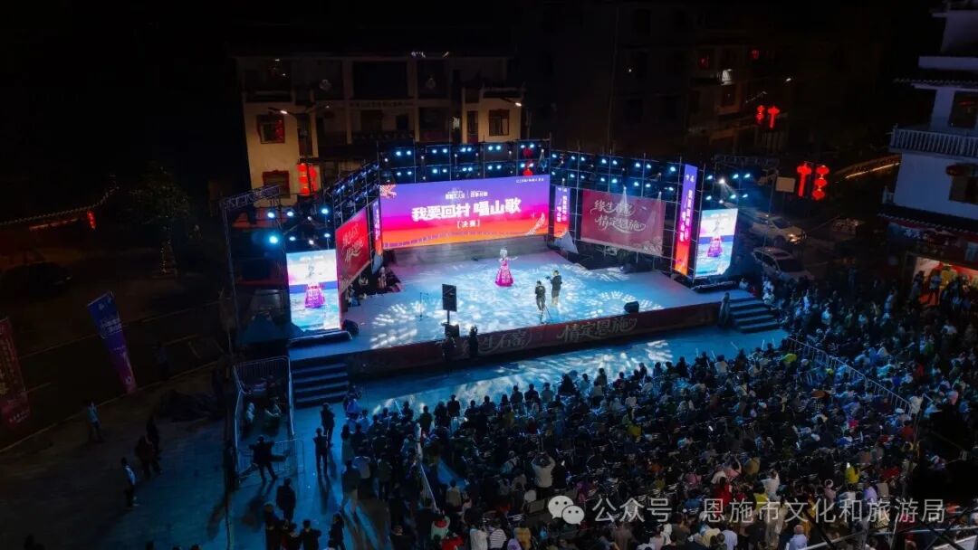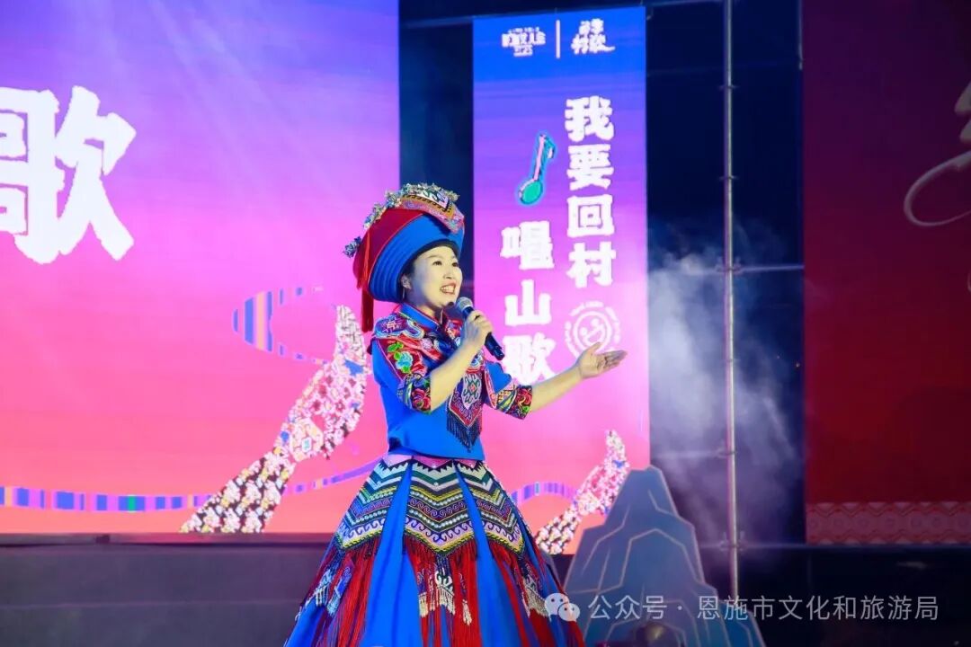 比賽當(dāng)晚,石窯村文化廣場燈火輝煌,人潮涌動。6名選手身著絢麗多彩民族服飾和帥氣靚麗的服裝,以傳統(tǒng)與時尚交融的造型亮相,他們精神飽滿,自信十足。從贊美家鄉(xiāng)山水的《清江畫廊土家妹》,到京腔京味的《門前情思大碗茶》,再到原汁原味的民族歌曲《找莫米》,一首首經(jīng)典曲目輪番上演,引發(fā)臺下掌聲、歡呼聲、喝彩聲此起彼伏,不絕于耳。