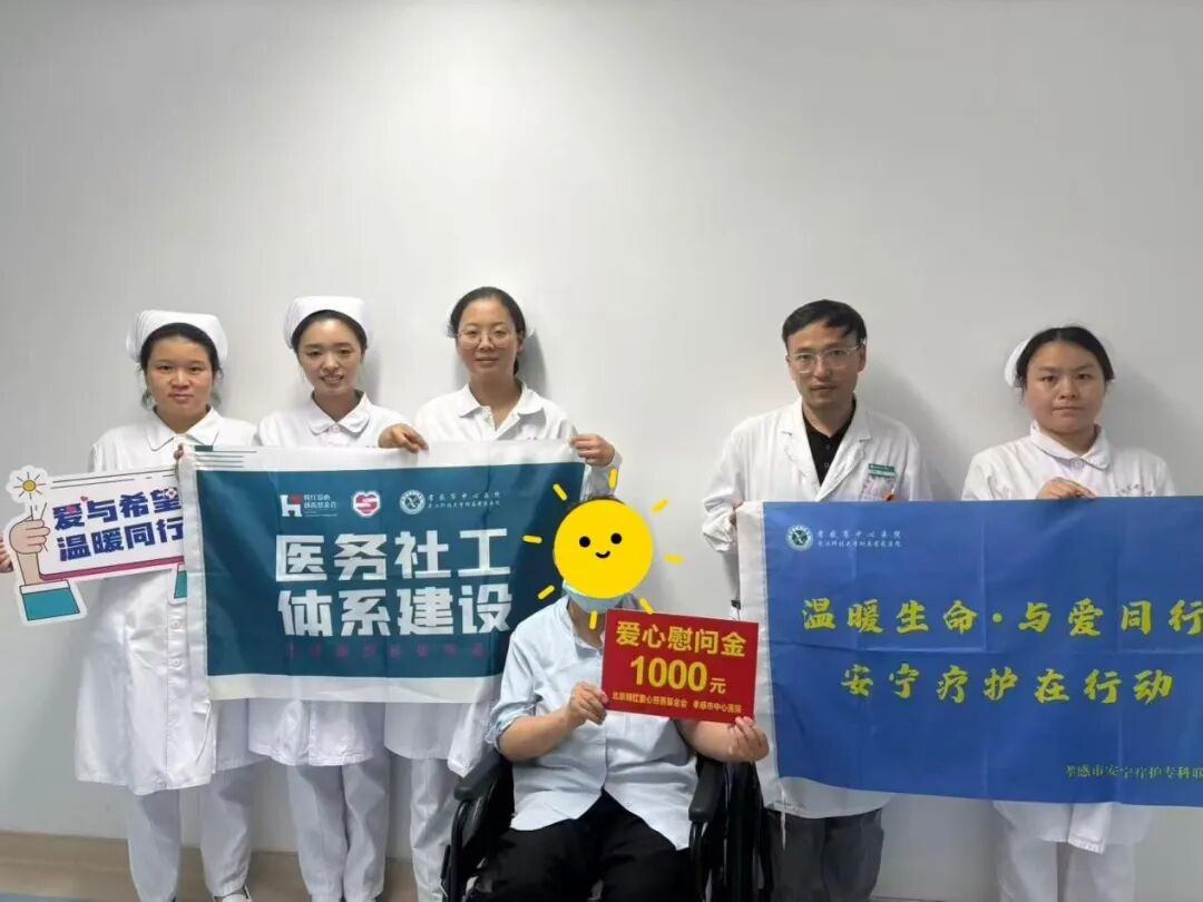 在此次關(guān)愛(ài)行動(dòng)中,市中心醫(yī)院積極鏈接社會(huì)慈善資源,與北京韓紅愛(ài)心慈善基金會(huì)展開(kāi)深度合作。8月份期間,共為7戶(hù)經(jīng)濟(jì)特別困難的末期癌癥患者家庭每戶(hù)送去了1000元慰問(wèn)金。這筆來(lái)自韓紅基金會(huì)的愛(ài)心善款,在一定程度上緩解患者家庭在應(yīng)對(duì)疾病過(guò)程中產(chǎn)生的經(jīng)濟(jì)壓力,也讓他們真切地感受到了社會(huì)各界的深切關(guān)懷。