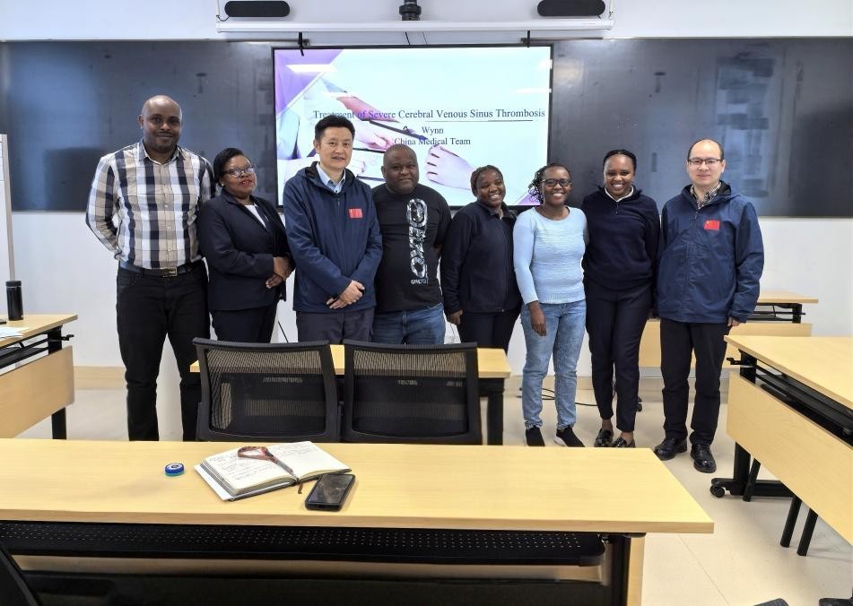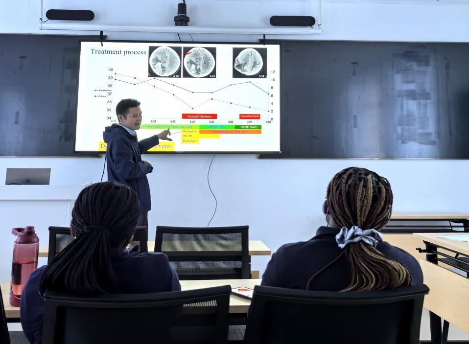 人民網(wǎng)約翰內(nèi)斯堡9月7日電 (記者鄒松)9月6日上午,中國(湖北)第19批援萊索托醫(yī)療隊在馬賽盧地區(qū)醫(yī)院開展醫(yī)學(xué)培訓(xùn)。醫(yī)療隊隊長、主任醫(yī)師吳輝在該院教學(xué)培訓(xùn)樓會議室進(jìn)行題為《重癥產(chǎn)褥期腦靜脈竇血栓伴出血、腦疝患者救治過程分享》的學(xué)術(shù)講座。培訓(xùn)對象為馬賽盧地區(qū)醫(yī)院重癥監(jiān)護(hù)室非值班醫(yī)護(hù)人員,活動獲得熱烈反響。