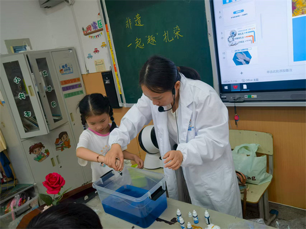 老師向孩子們科普扎染知識(shí)。 通訊員供圖