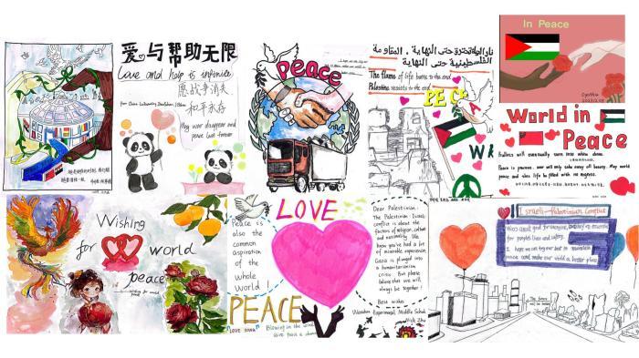 浙江溫州學生所畫“心繪希望 愛滿加沙”公益作品。(受訪者供圖)