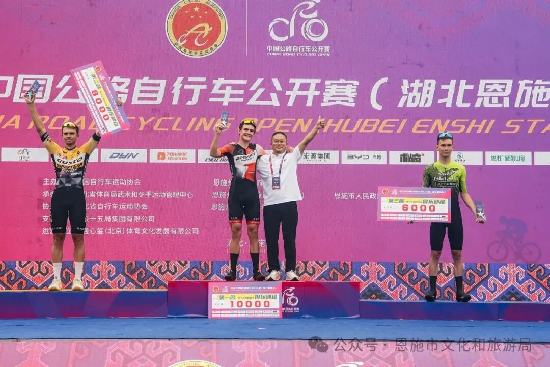 2025年中國公路自行車賽(湖北恩施站)第一賽段所有比賽圓滿結(jié)束,經(jīng)過激烈角逐,跡馳-瑞豹車隊獲得俱樂部組團體積分第一名,來自跡馳-瑞豹車隊的VLADISLAY SOZINOV最終憑借強勁的沖刺能力摘得桂冠,被授予白衫,來自GUSTO SUPERTEAM車隊的VITALII和重慶南岸風騎捷安特車隊的BLOKHIN IVAN 分獲二、三名;男子精英組、大學生組、青少年組及女子精英組冠軍分別由來自恒宇單車的馮浩然、任中昊、DYC-晟亦青訓選手方宇軒和Bigrock大石魅騎廠隊張婷婷獲得。