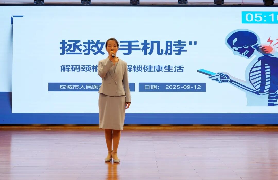 孝感市中心醫(yī)院副院長張海燕在健康科普大賽上進(jìn)行致辭,經(jīng)過前期預(yù)賽,18位來自各醫(yī)聯(lián)體成員單位的參賽代表同臺(tái)競技,圍繞慢性病管理、急救常識(shí)、婦幼健康、老年健康等群眾關(guān)切的健康話題開展了科普宣講。