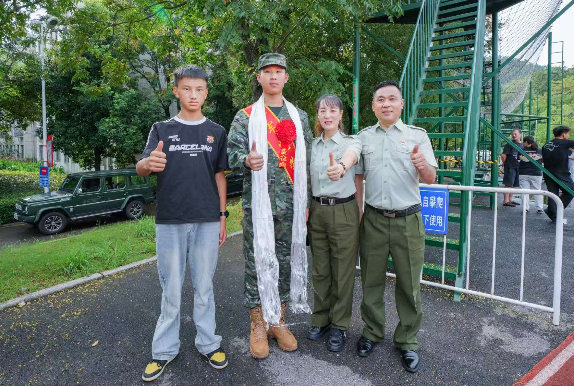 歡送儀式上,19歲新兵趙祥緣的“送行團(tuán)”格外引人注目:身著舊軍裝的退役軍人父母、專程從河南趕來的祖輩親人,以及一位來自西藏的“弟弟”,組成強(qiáng)大的“親友團(tuán)”,送上臨行前的叮囑與祝福。趙祥緣的父母均為退役軍人,父親趙紅軍曾服役于狼牙山五壯士所在的英雄部隊(duì)紅一師,軍裝雖已卸下,軍人本色卻從未褪色?!拔覀兗腋筷?duì)有緣,我們夫妻倆曾在部隊(duì)服役20年,如今祥緣接過接力棒,是全家的驕傲!”趙紅軍話語鏗鏘,身旁的妻子眼眶泛紅,卻難掩自豪。