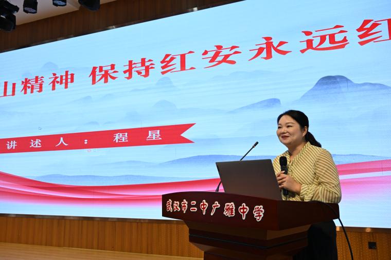 活動在莊嚴肅穆的氛圍中拉開帷幕。第十四屆全國人大代表、黃麻起義和鄂豫皖蘇區(qū)紀念園游客接待中心副主任程星同志帶來專題宣講。結(jié)合十七年深耕紅色文化的實踐,程星以豐富史料為基、鮮活案例為引,系統(tǒng)解讀習(xí)近平總書記關(guān)于大別山精神的重要論述,深刻闡釋“堅守信念鑄忠魂、緊跟黨走踐初心、顧全大局顯擔當、團結(jié)奮斗創(chuàng)偉業(yè)、勇當前鋒爭先鋒、不勝不休礪志氣”的精神內(nèi)核,贏得師生陣陣掌聲。