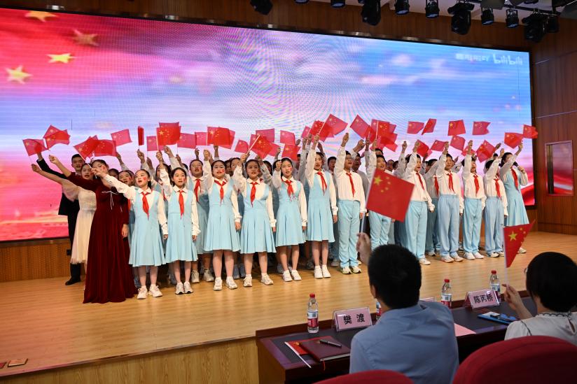 “祖國啊,祖國,我深深地愛著我的祖國!”,二中廣雅中學(xué)的師生帶來的沉浸式歌舞朗誦《歌唱祖國》,將活動推向高潮,他們用少年之聲與歷史回響隔空對話,點燃全場愛國熱情。