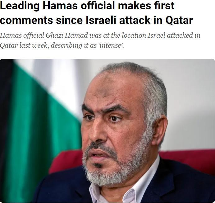 加齊·哈馬德表示,空襲發(fā)生在“我們開始研究加沙?;鹛嶙h不到一個小時之后”,哈馬斯領(lǐng)導(dǎo)層當(dāng)時正在討論美國通過卡塔爾轉(zhuǎn)交的一項建議。