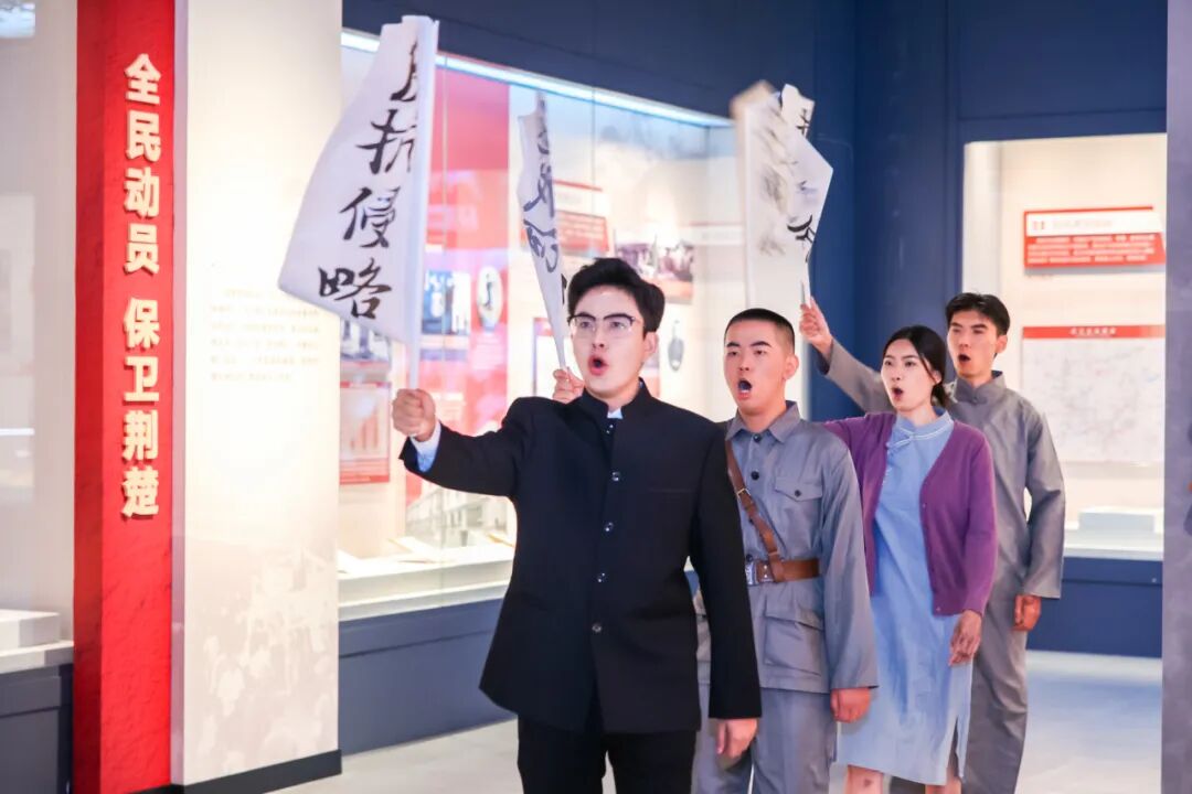 在“保衛(wèi)大武漢”場景前,同學(xué)們用童言童語宣講抗戰(zhàn)故事,齊聲高唱抗戰(zhàn)歌曲;在“跨越時空的對話”環(huán)節(jié)中,大中小學(xué)生深情誦讀紅色家書,寫信給保家衛(wèi)國的戰(zhàn)士們,表達內(nèi)心的無限崇敬;在打卡紅色專題展覽時,大家參與演繹情景劇,讓歷史可觸可感。