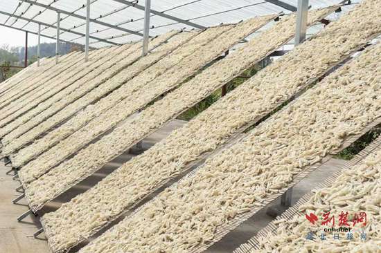 而這樣的環(huán)境催生了“豆絲”這一鄂州傳統(tǒng)美食。除了大米外,綠豆、黃豆、葛根等“豆絲”原材料生長(zhǎng)在山溝、溪邊、林中?!懊磕耆攵?,幾乎家家起大灶開始制作豆絲,風(fēng)干后可以留存整個(gè)冬天?!敝軛罱榻B。