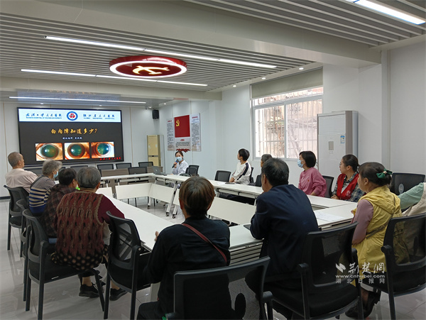 活動(dòng)當(dāng)天,社區(qū)黨群服務(wù)中心設(shè)立了臨時(shí)義診服務(wù)點(diǎn)。武漢大學(xué)人民醫(yī)院眼科醫(yī)護(hù)團(tuán)隊(duì)為居民提供了包括視力檢查、眼壓測量、專科醫(yī)生問診等一系列專業(yè)診療服務(wù)。社區(qū)基層黨員和志愿者積極配合,有序引導(dǎo)居民排隊(duì)、協(xié)助信息登記、耐心解答疑問,保障了現(xiàn)場流程順暢、秩序井然。