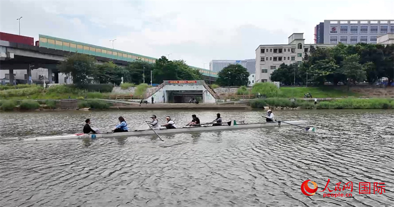 人民網(wǎng)外國專家在茅洲河體驗賽艇。人民網(wǎng) 王君哲攝