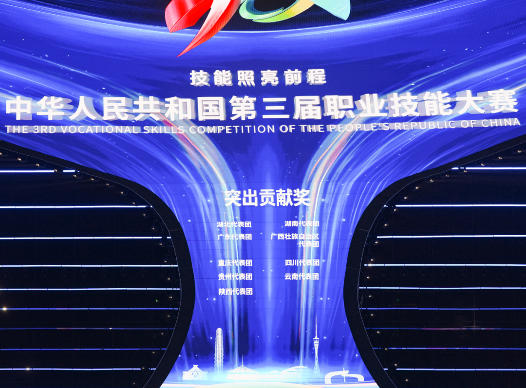 閉幕式圍繞《逐夢同行 技行人生》《強(qiáng)國同行 技創(chuàng)未來》《世界同行 技無國界》3個篇章進(jìn)行了現(xiàn)場表演。來自全國各行業(yè)的中華技能大獎獲得者、勞動模范、全國技術(shù)能手、世賽冠軍、大賽合作伙伴代表等作為嘉賓,為本屆大賽獲得金、銀、銅牌348名選手頒獎?,F(xiàn)場公布了參賽團(tuán)最佳選手獎、西部技能之星和大賽突出貢獻(xiàn)獎、優(yōu)秀組織獎獲獎名單。