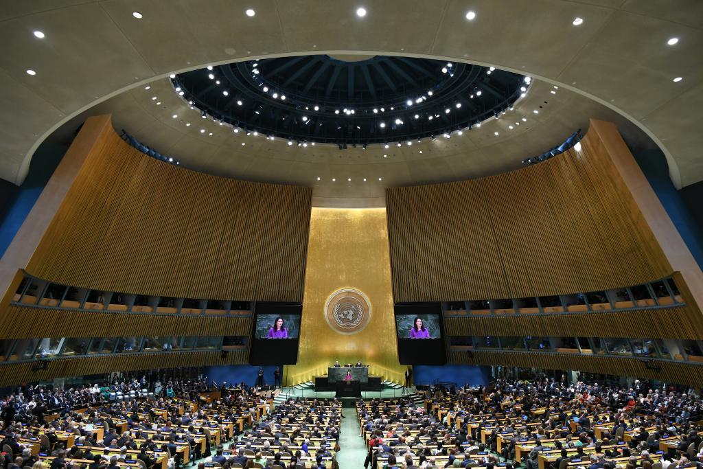 9月23日,在位于紐約的聯(lián)合國總部,第80屆聯(lián)大主席貝爾伯克在第80屆聯(lián)合國大會一般性辯論開幕式上發(fā)言。新華社記者李睿攝