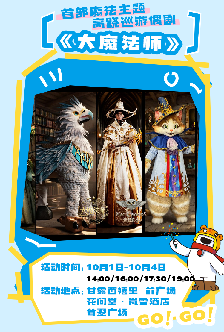 烏鎮(zhèn)戲劇節(jié)演藝團(tuán)隊將空降甘露山,這支魔術(shù)團(tuán)隊為游客帶來最新力作——中國首部魔法主題高蹺木偶劇《大魔法師》武漢首演,這也是該劇的全國首演,高2.4米白袍巫師哈瑞、精靈法師瑞秋、黑袍赫侖等IP角色震撼登場,可一睹各類經(jīng)典魔法咒語現(xiàn)場版,感受大魔法的奇幻世界。