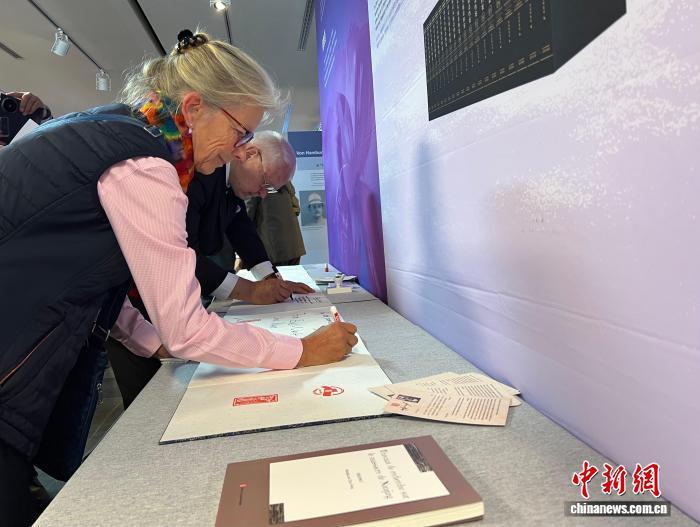 當(dāng)?shù)貢r(shí)間9月29日,“世界記憶 和平愿景——約翰·拉貝等德國(guó)人士見(jiàn)證的南京大屠殺”主題展覽在柏林中國(guó)文化中心開(kāi)幕。圖為觀眾觀展后留言。中新社記者 馬秀秀 攝
