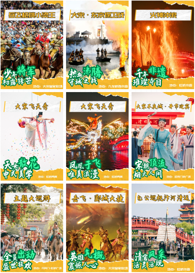 清明上河園——大型宋文化主題公園是國(guó)家文化產(chǎn)業(yè)示范基地、國(guó)家AAAAA級(jí)旅游景區(qū),以《清明上河圖》為靈感,還原北宋市井生活與宮廷娛樂(lè),通過(guò)演藝活化宋代史與人物典故,是文化體驗(yàn)與休閑娛樂(lè)的完美結(jié)合,獲得快樂(lè)的同時(shí)也會(huì)收獲深刻的歷史體驗(yàn)。