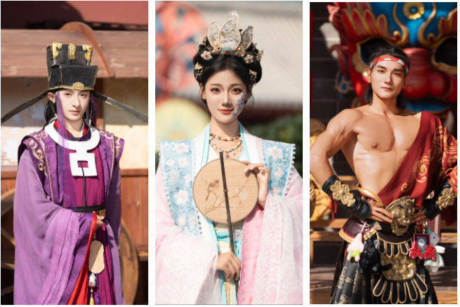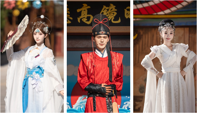 首先,清明上河園是宋式園區(qū),和古裝超級(jí)適配!所以,可以著漢服入園,另外,園區(qū)設(shè)有三處免費(fèi)換裝點(diǎn),分別位于迎賓門廣場(chǎng)、宋裝館、尚服局,都可以免費(fèi)換裝,團(tuán)扇、折扇也可以備一把哦~