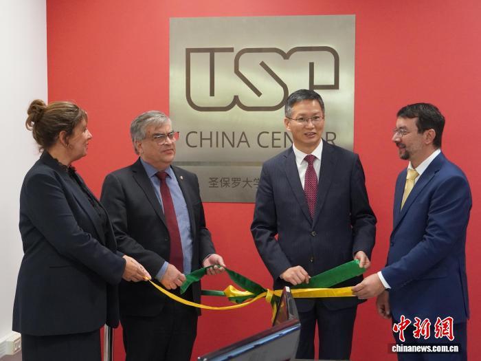 當(dāng)?shù)貢r(shí)間3月21日,巴西圣保羅,巴西圣保羅大學(xué)中國(guó)中心成立揭牌儀式。記者林春茵攝