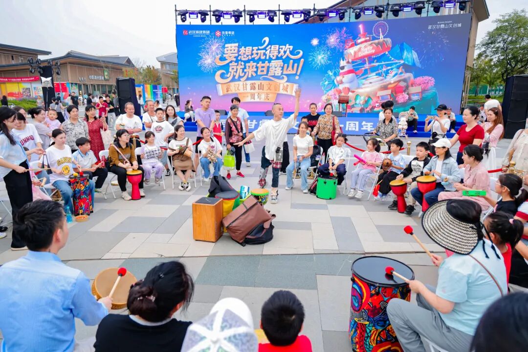 廣場(chǎng)正中,幾十名鼓手圍坐成圈,使用非洲鼓,在引導(dǎo)師帶領(lǐng)下共同演奏出悅耳的音樂。不少游客紛紛加入“百人手鼓派對(duì)”活動(dòng),學(xué)習(xí)非洲鼓演奏,現(xiàn)場(chǎng)氣氛熱烈。
