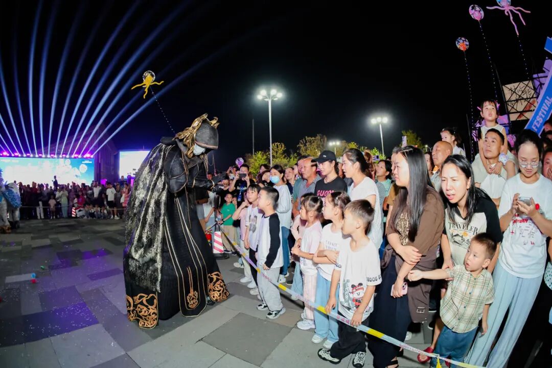 伴隨著開場(chǎng)音樂,高2.4米的白袍巫師哈瑞、黑袍巫師、精靈法師瑞秋等角色踩著高蹺驚艷登場(chǎng),只見黑袍巫師從袖中掏出匕首,轉(zhuǎn)瞬間匕首燃起火焰,魔法師們與觀眾互動(dòng)握手,把彩帶撒向人群,將現(xiàn)場(chǎng)氣氛推向高潮。10月1日,黃陂區(qū)甘露山文創(chuàng)城國際街頭藝術(shù)節(jié)正式開幕,吸引近5萬名游客前來打卡。