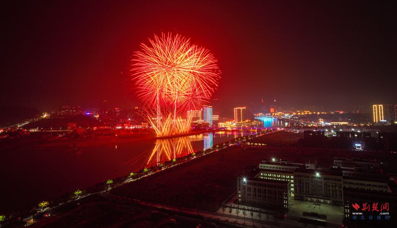 荊楚網(wǎng)(湖北日報網(wǎng))訊(記者 胡小軍 通訊員 吳滕鈺)10月2日晚,英山縣城區(qū)一河兩岸霓虹閃爍,親水步道上鮮艷的國旗迎風(fēng)飄揚(yáng),處處洋溢著喜慶熱烈的節(jié)日氣氛。大別山文學(xué)廣場周圍成為縣城熱度最高的地區(qū),上萬名市民、游客從四面八方匯集于此,大家翹首以盼,提前拿出手機(jī),選好角度,用鏡頭定格即將開始的視覺盛宴。