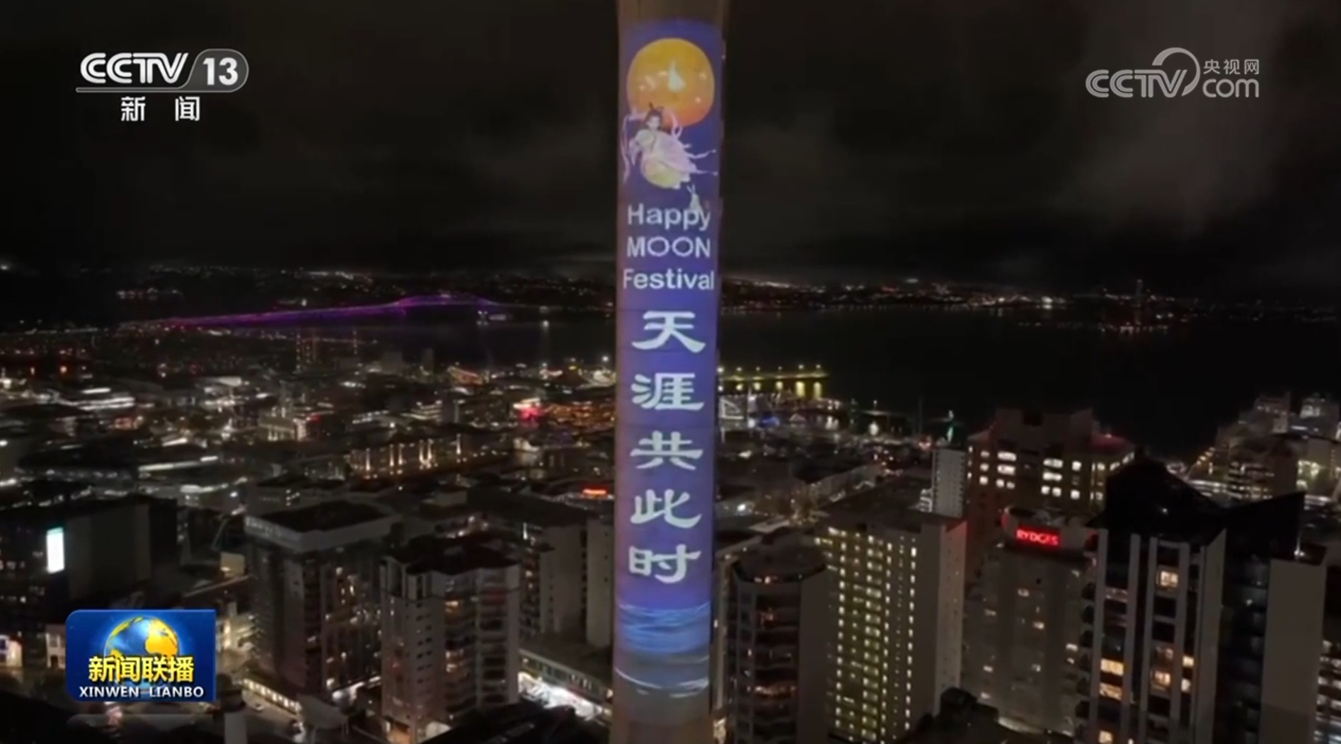 新西蘭奧克蘭日前首次舉行中秋投影活動(dòng),以傳統(tǒng)水墨為靈感,嫦娥、玉兔、月餅等中秋元素投射在奧克蘭標(biāo)志性建筑天空塔上,讓當(dāng)?shù)孛癖姼惺苤腥A文化的魅力。