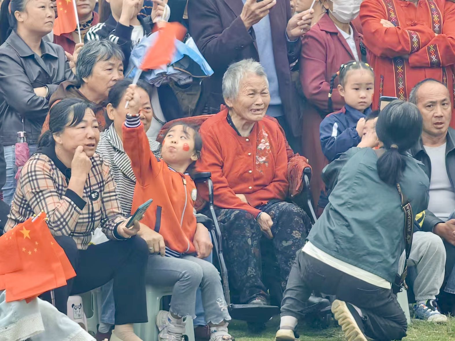 當(dāng)《好日子》的旋律響起,劉鳳英老人緊緊盯著舞臺(tái),渾濁的眼睛漸漸發(fā)亮,嘴角揚(yáng)起久違的笑容,淚水突然滑落:“這是她癱瘓后第一次為演出流淚,像是把十年的悶都哭出來(lái)了。”段秀容輕拭母親的眼淚,自己也紅了眼眶。周圍觀眾紛紛讓路,有人搬來(lái)凳子,有人遞上溫水,現(xiàn)場(chǎng)暖意涌動(dòng)。