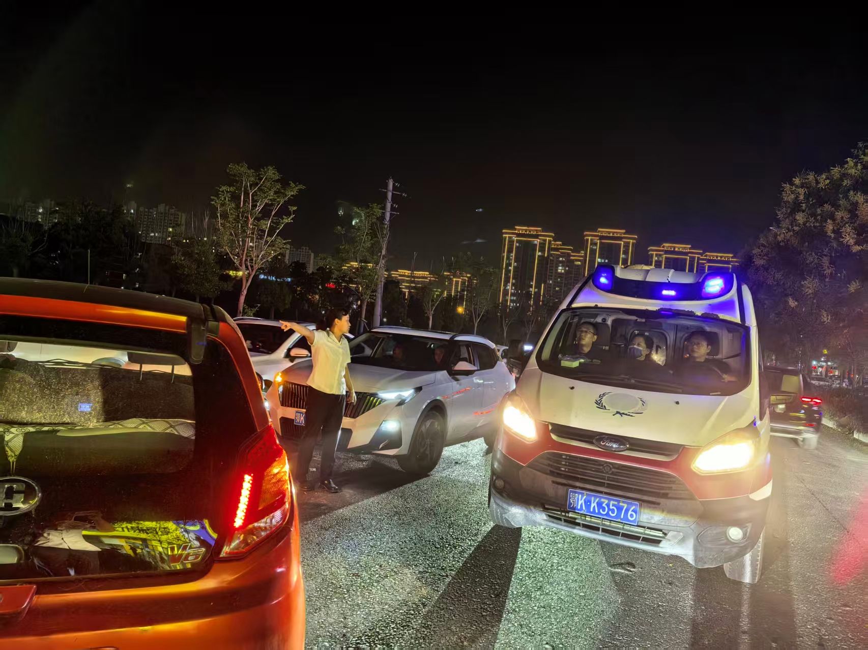 在等待救護車的過程中,兩人始終堅守在現(xiàn)場??吹绞鹿尸F(xiàn)場周邊過往車輛逐漸增多,為避免二次事故發(fā)生,他們主動站在道路兩側(cè),揮手引導車輛減速避讓,維護現(xiàn)場交通秩序。幾分鐘后,救護車呼嘯而至,兩人又第一時間協(xié)助醫(yī)護人員查看傷者狀況,合力將傷者小心翼翼地抬上救護車,直到救護車順利駛離,他們才放心離開。