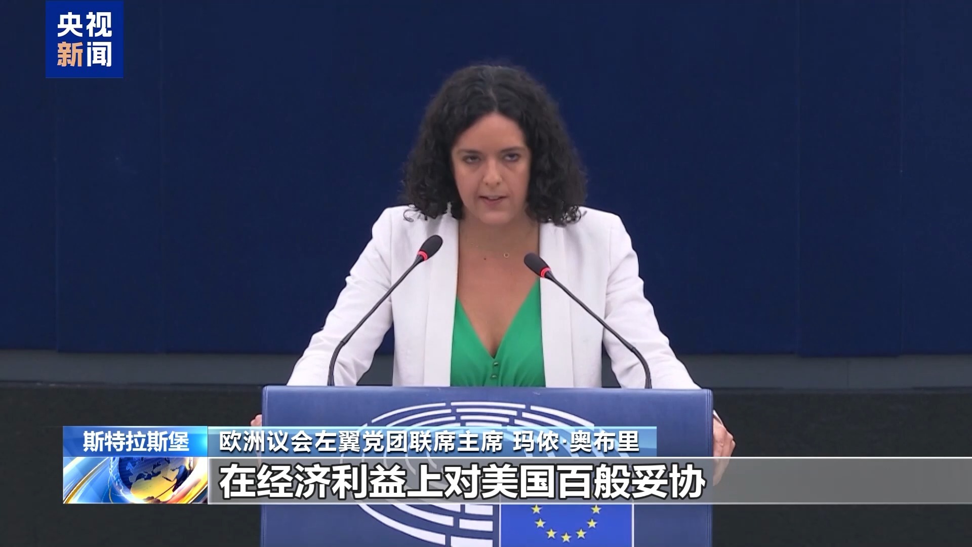 歐洲議會(huì)左翼黨團(tuán)聯(lián)席主席 瑪儂·奧布里:馮德萊恩向特朗普投降,在經(jīng)濟(jì)利益上對(duì)美國(guó)百般妥協(xié),犧牲了歐洲人的利益。