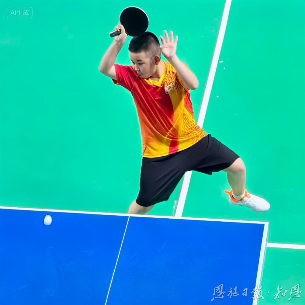 8月的恩施仍然酷熱難當(dāng),乒乓球場館內(nèi)蒸騰著細(xì)密的熱意,每一場比賽下來,小選手們的衣衫都會被汗水浸透,白凈的臉頰也漲得紅撲撲的。10歲的黃宇澤也不例外,歷經(jīng)六輪激烈角逐,他最終成功闖入男子10歲組四強(qiáng)。