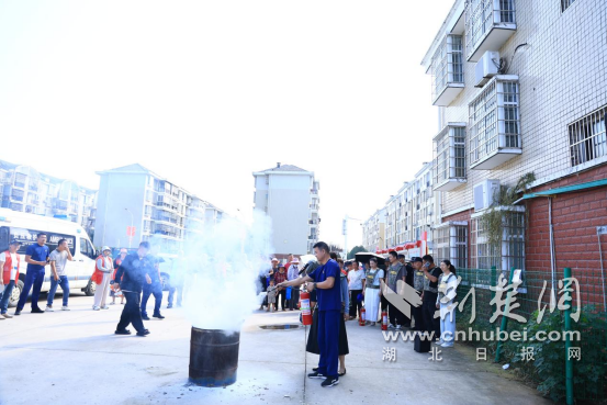 廣場一側(cè),先由湘口街道專職消防隊帶來一場沉浸式防災(zāi)減災(zāi)知識課。消防隊員就滅火器的性能、用途、使用方法、設(shè)備維護(hù)等基本知識進(jìn)行講解,對如何正確使用消防栓、鋪設(shè)水帶進(jìn)行了展示,著重講解了滅火器“一搖、二對、三撥、四壓”的操作技巧和注意事項,并指導(dǎo)社區(qū)居民進(jìn)行滅火器實操演練?!耙郧坝X得滅火器操作很難,掌握技巧一點(diǎn)不難!”參加實操的居民李大爺說道。