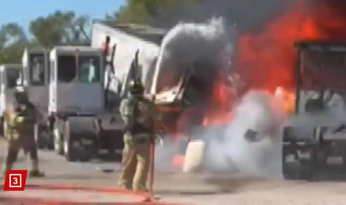 中新網(wǎng)10月13日電 綜合美媒報(bào)道,當(dāng)?shù)貢r(shí)間12日,美國(guó)得克薩斯州沃斯堡市,一架小型飛機(jī)在??怂箼C(jī)場(chǎng)附近墜毀,造成地面多輛半掛卡車起火,另有2人死亡。