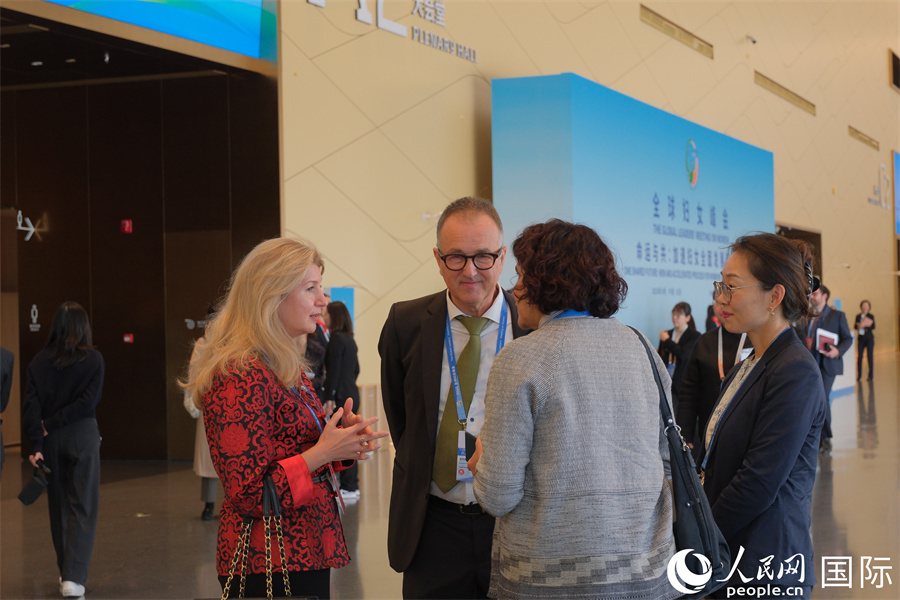 | 嘉賓在全球婦女峰會現(xiàn)場交流。人民網(wǎng)記者 宋美琪攝 |