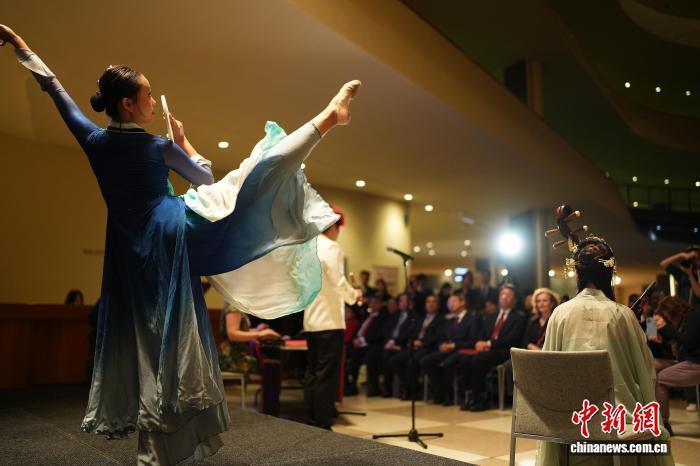 當(dāng)?shù)貢r間10月13日,2025“天涯共此時—中秋詩會”在紐約聯(lián)合國總部舉辦。圖為舞蹈《月影流光》。中新網(wǎng)記者 廖攀 攝