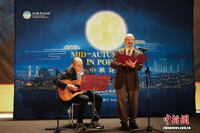 詩會以紐約市議員馬泰中英雙語朗誦的《靜夜思》開場。隨后,中美藝術(shù)家登臺,呈現(xiàn)了《望月懷遠(yuǎn)》《春江花月夜》《水調(diào)歌頭·明月幾時有》等中國古典詩篇,以及美國詩人柯克·拉森(Kirk Larsen)創(chuàng)作的現(xiàn)代詩《中秋豐收將至》。