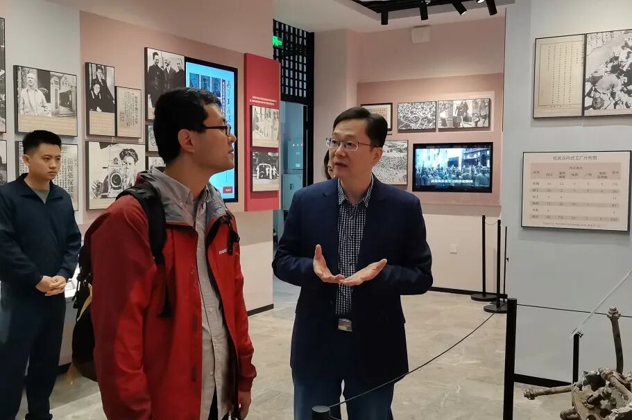 參觀過程中,小林拓也重點(diǎn)觀看了基本陳列第三部分《大江洪波》。講解員為其特別介紹了中國(guó)共產(chǎn)黨第一個(gè)外事機(jī)構(gòu)——國(guó)際宣傳委員會(huì)及下設(shè)的國(guó)際宣傳組在武漢成立后,周恩來等長(zhǎng)江局領(lǐng)導(dǎo)人,為推動(dòng)建立國(guó)際反法西斯統(tǒng)一戰(zhàn)線,與各方國(guó)際友人在漢廣泛交往的故事,并重點(diǎn)介紹了反對(duì)侵華戰(zhàn)爭(zhēng)、為和平奔走呼號(hào)的日籍反戰(zhàn)人士綠川英子、鹿地亙等人的相關(guān)事跡。