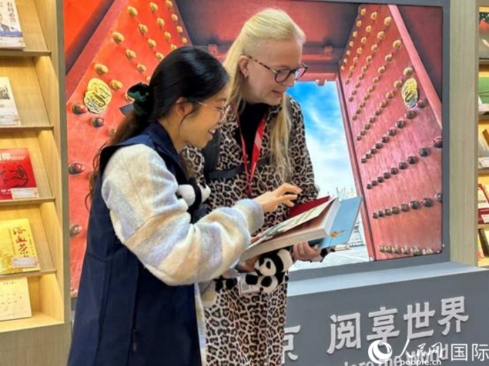 德國(guó)出版從業(yè)者代吉拉在北京圖書(shū)展區(qū)。人民網(wǎng)記者 徐馨攝