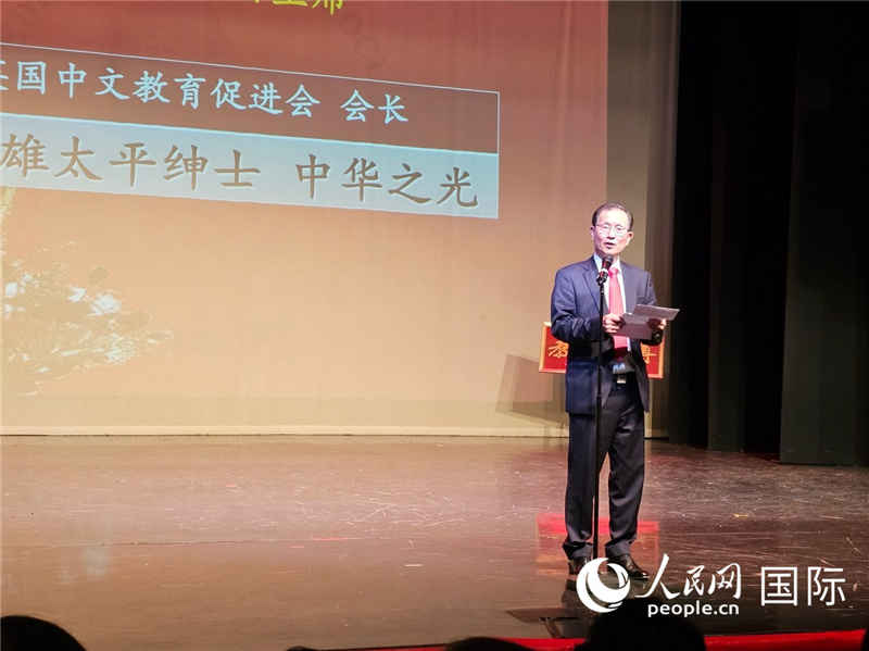 英國中文教育促進(jìn)會(huì)會(huì)長伍善雄發(fā)表致辭。人民網(wǎng) 徐量攝