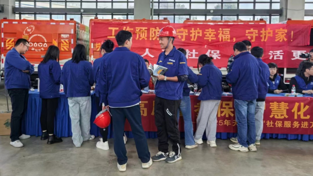 天門市走進企業(yè),向徐工湖北環(huán)??萍脊煞萦邢薰締T工送上貼心社保服務(wù)。