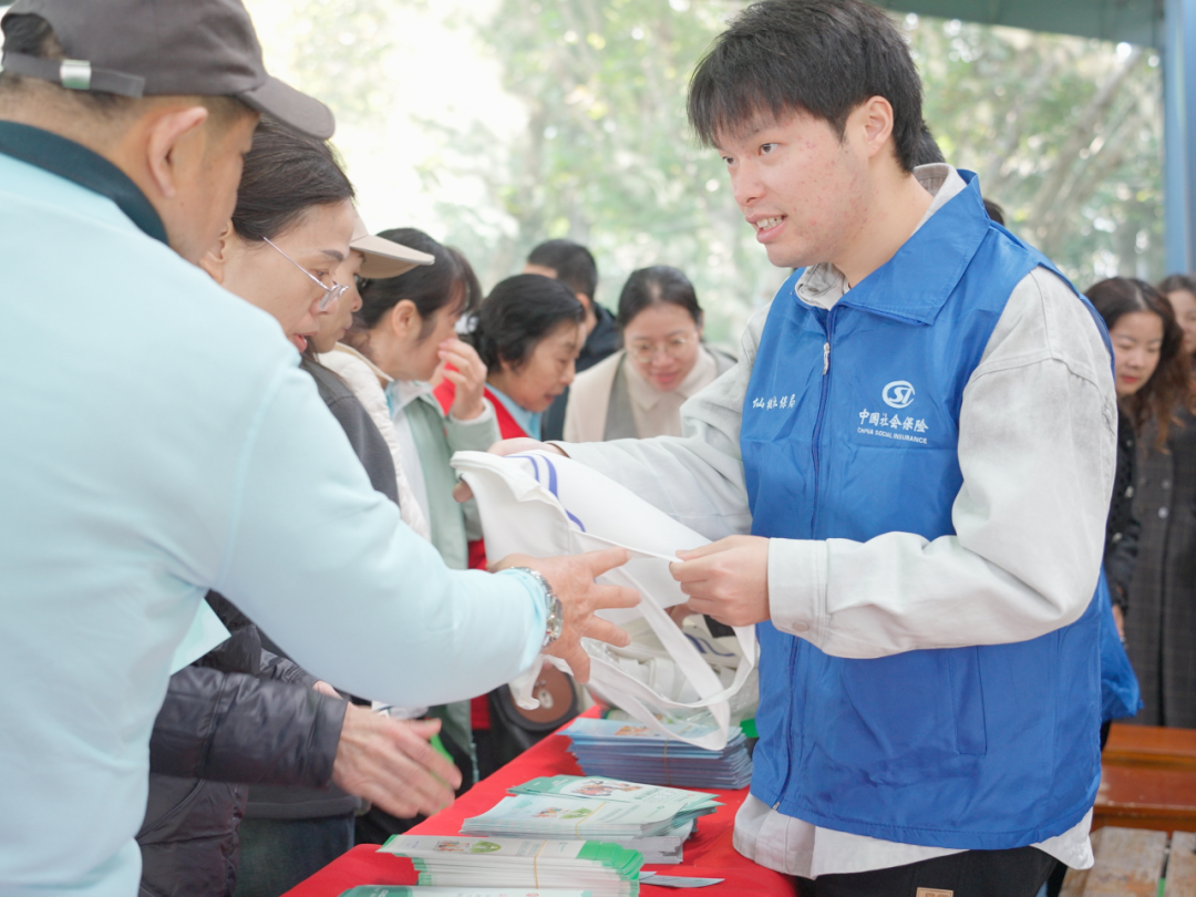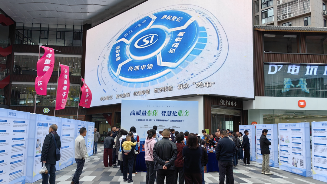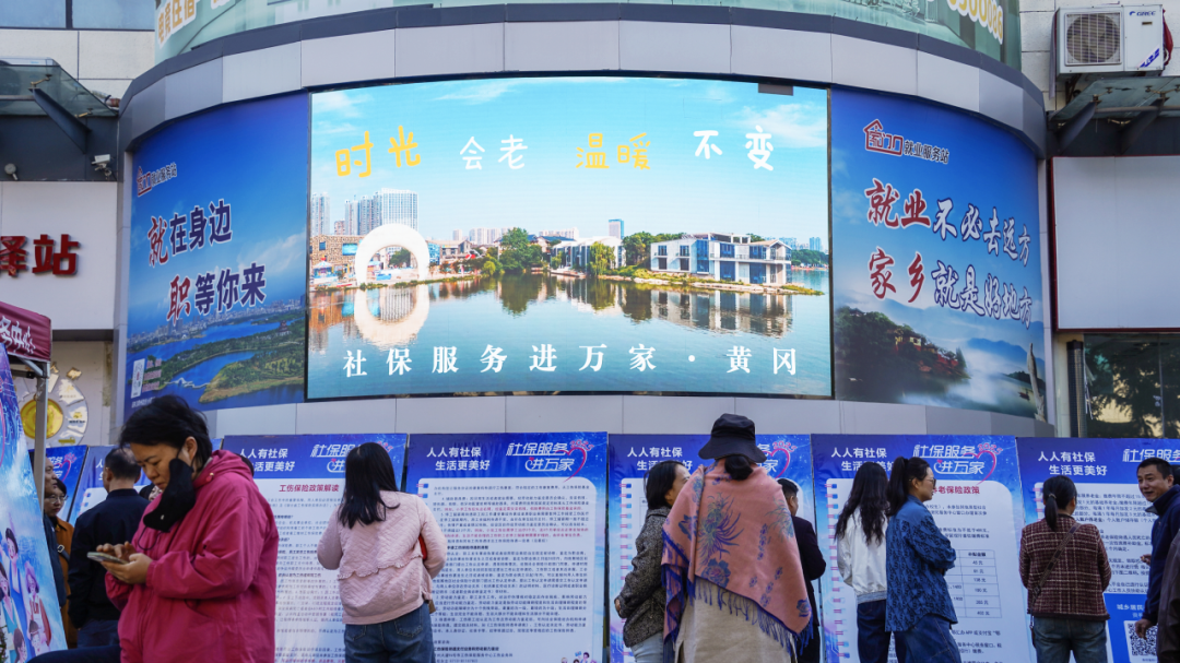 黃岡市“社保服務(wù)進萬家”活動現(xiàn)場,群眾在社保政策宣傳展板前駐足觀看。