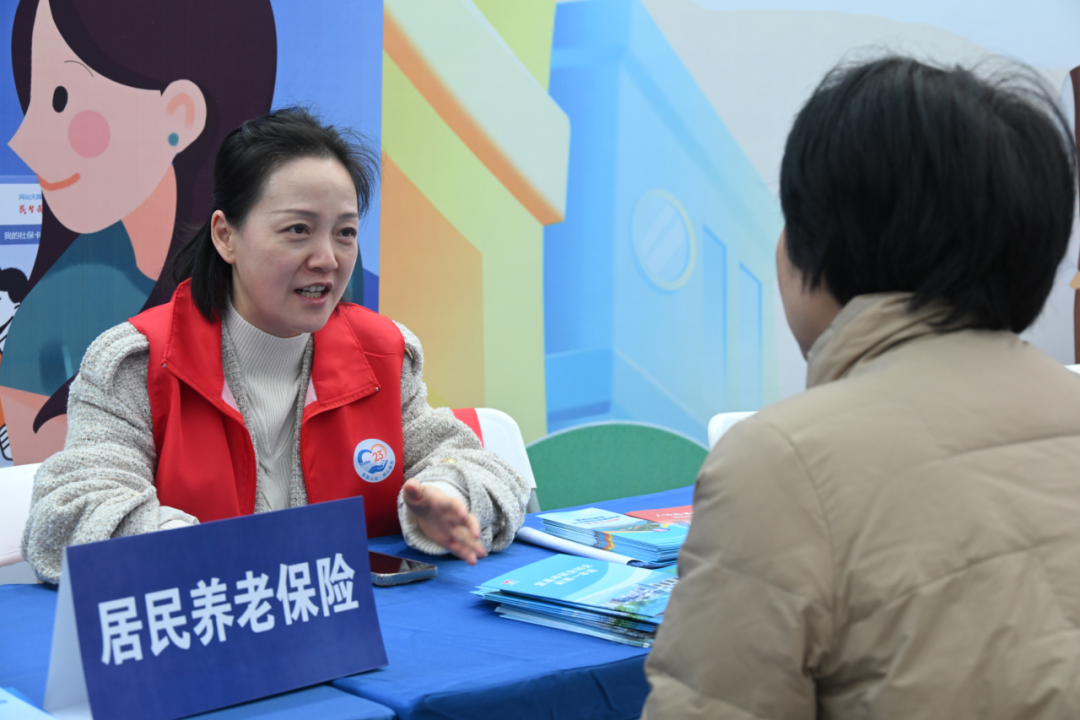 在宜昌市伍家崗區(qū)三峽環(huán)球港廣場,群眾向工作人員了解居保提檔繳費。