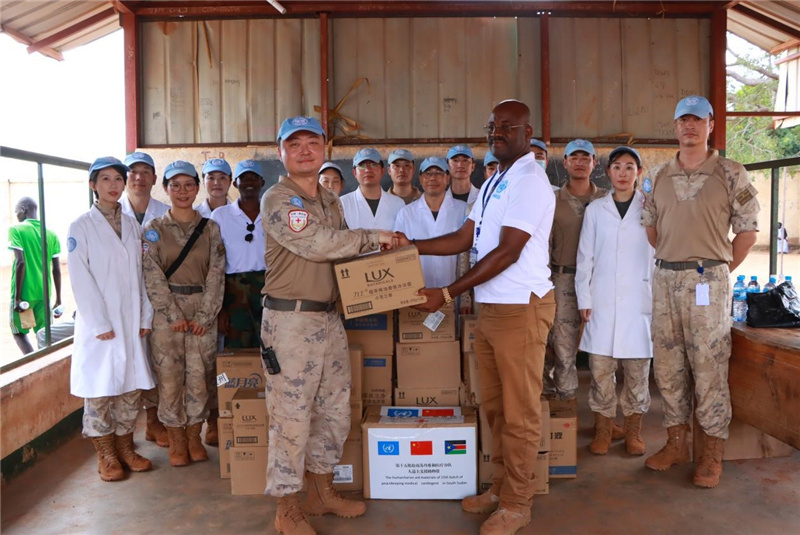 中國維和醫(yī)療分隊向當地捐贈醫(yī)療物資。魯振輝攝