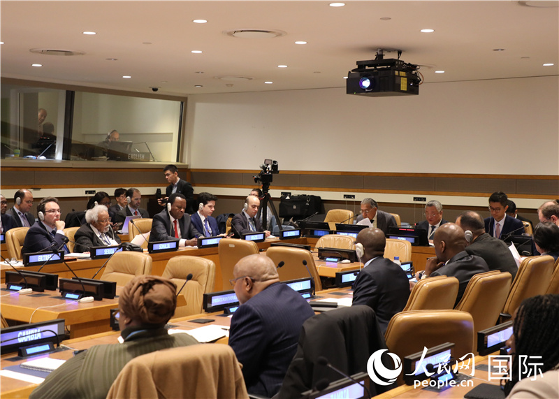 中國常駐聯(lián)合國代表傅聰主持會議并作主旨發(fā)言。人民網記者 李志偉攝